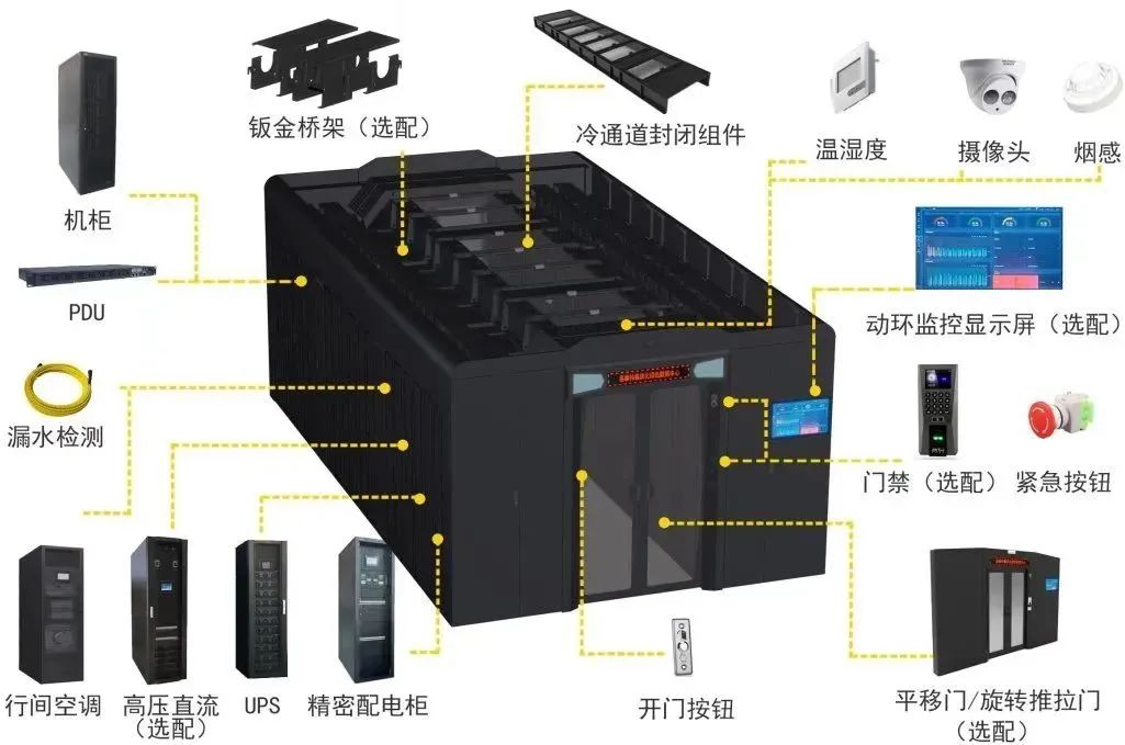 ·高效一体化供配电,封闭式冷通道,功率密度及能效业内领先。